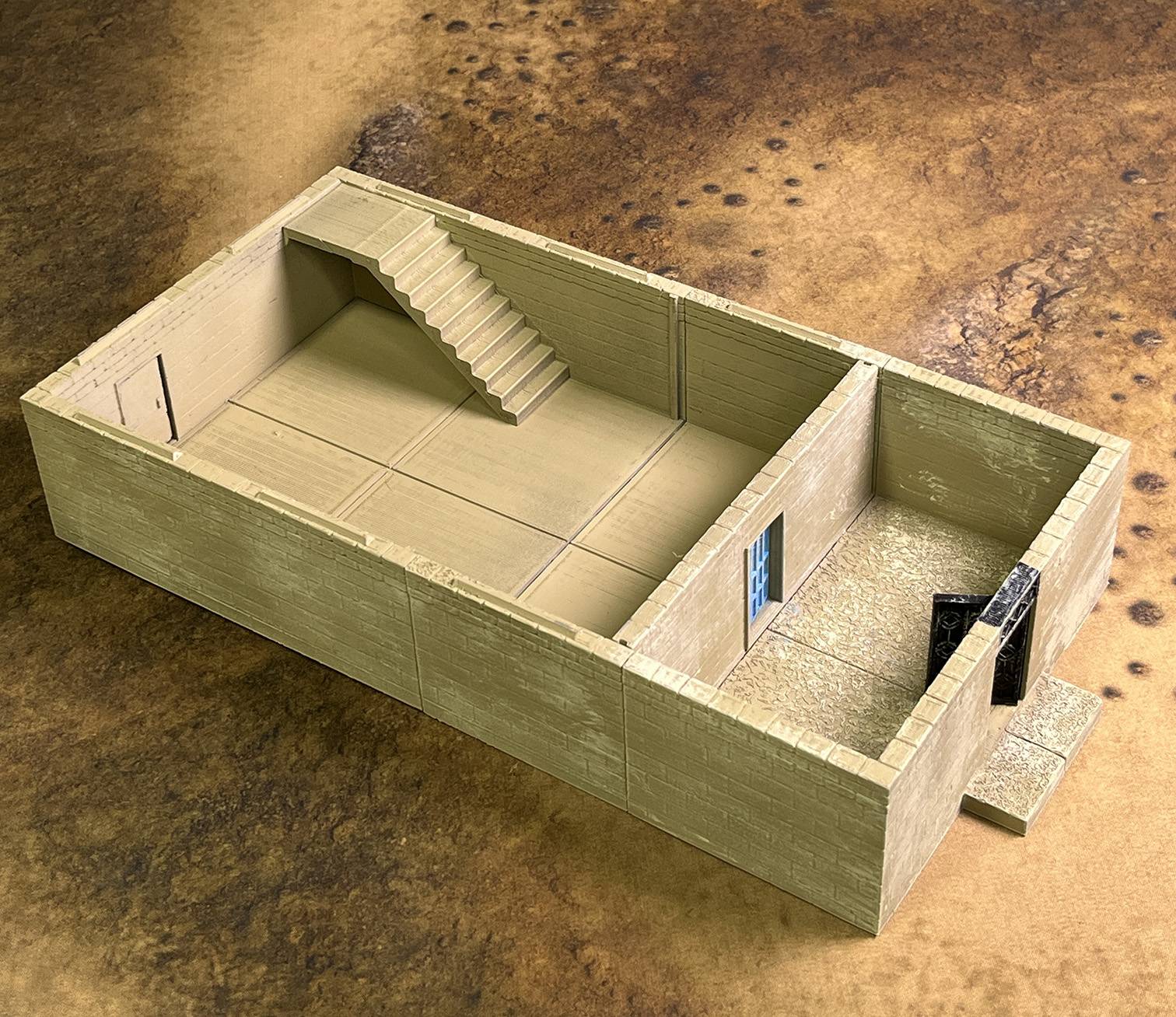 28-32mm scale - one 3D PLA printed building. Does not come painted. Does not come with detailing items as you may see in some promotional photos. This pledge has options to receive unpainted stretch goals. Assembly is required.