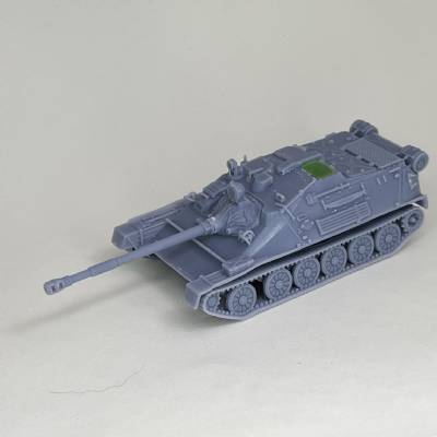 28mm scale - ASU-85 is 3D resin printed. Does not come painted. Some assembly required.