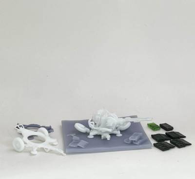 28mm scale - 3D resin printed. Comes with the gun, firing base, transporting base, firing from back of truck base, 4" detailed base, and 6 various cases of ammo.